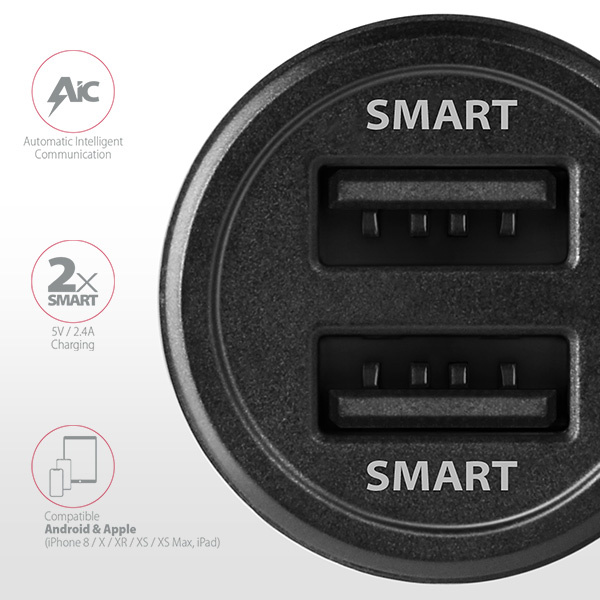 AXAGON PWC-5V5, SMART nabíjačka do auta, 2x port 5V-2.4A + 2.4A, 24W