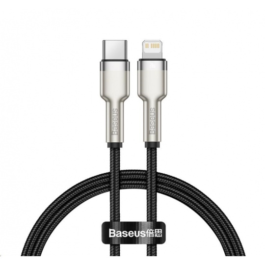 Kábel BASEUS Cafule Metal Series je odolný kábel, ktorého koncovky sú potiahnuté zliatinou zinku, aby vydržali dlhé a náročné používanie. Výrobok je tiež vybavený špeciálnym nylonovým opletením, ktoré zabraňuje treniu a chráni káble vo vnútri. Zlepšila sa aj odolnosť konektorov - boli testované na 10 000 spojení a boli špeciálne profilované tak, aby sa kábel dal používať aj vtedy, keď je telefón v puzdre. Kábel má funkciu rýchleho nabíjania a prenosu dát PD 20 W. Jeho dĺžka je 200 cm.