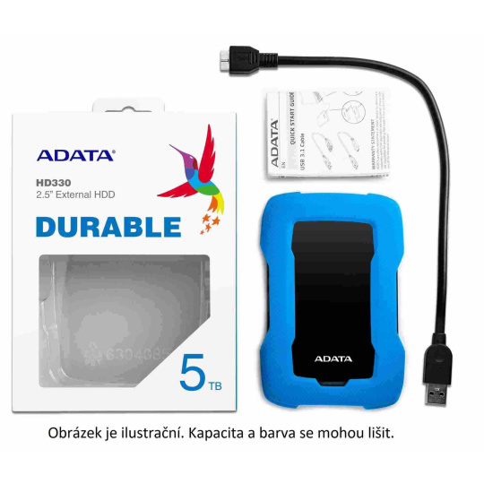 BAZAR - ADATA Externí HDD 5TB 2,5" USB 3.1 HD330, BLACK COLOR BOX, černý (gumový, nárazu odolný) - Poškozený obal (Kompl