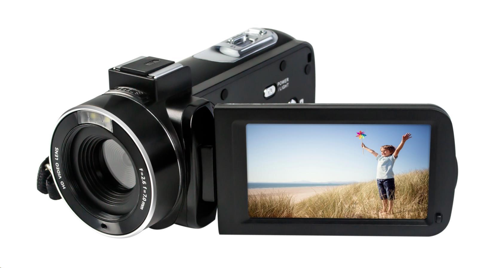 Videokamera Realimove CC2700 vám zabezpečí dobré pohodlie pri natáčaní životných okamihov v rozlíšení 2,7K. Má ergonomický úchop a 3" dotykovú obrazovku. Pri natáčaní môžete tiež využiť 18× digitálny zoom. Kĺbový LCD displej vám umožní sledovať všetko, čo práve nahrávate. Videokamera CC2700 nenatáča len videá, ale tiež umožňuje vytvárať veľmi pekné fotografie v rozlíšení 24 MP.