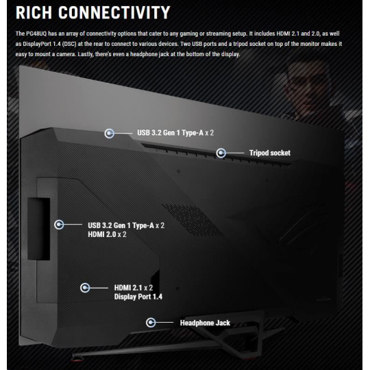 BAZAR - ASUS LCD 47.5" PG48UQ 3840x2160 ROG Swift OLED GAMING 4K, OLED, 450cs, 138Hz, 0.1ms, repro 10W, HDMI DP USB vesa