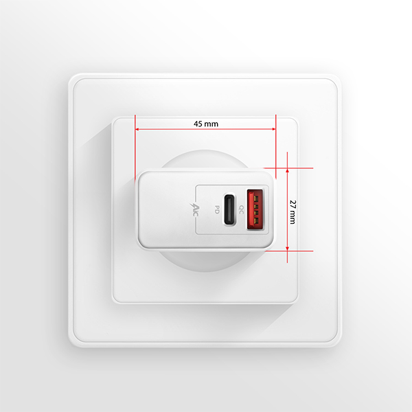 S celkovým výkonom 22 W nabíjačka nabíja mobilné zariadenia najvyššou možnou rýchlosťou. Adaptér ponúka nielen štandardný konektor USB-A, ale aj moderný obojstranný konektor USB-C.