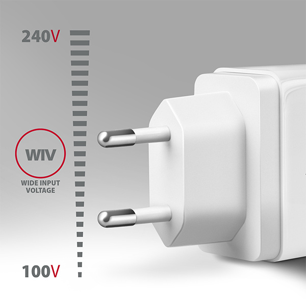 - Wide Input Voltage - široký rozsah vstupného napätia, chráni adaptér pred podpätím a prepätím na vstupe a umožňuje používanie viacerých "národných štandardov napájania".