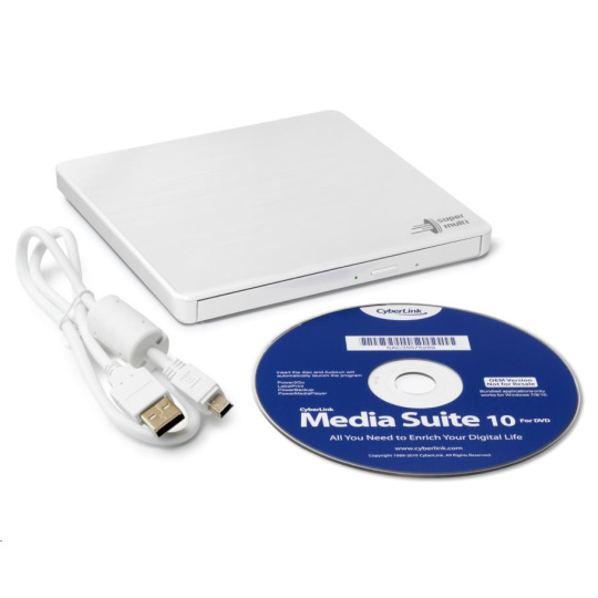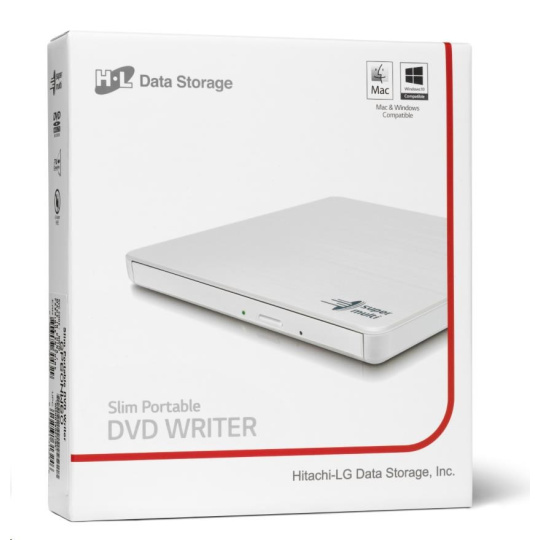BAZAR - HITACHI LG - externí mechanika DVD-W/CD-RW/DVD±R/±RW/RAM GP60NW60, Slim, White, box+SW - Poškozený obal (Komplet