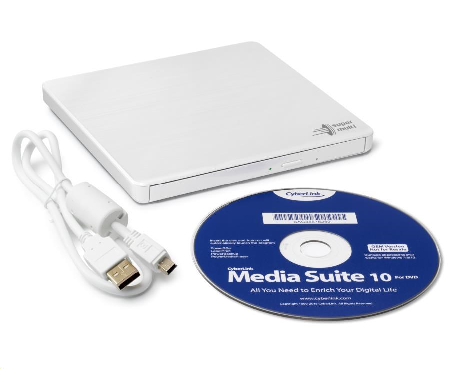 BAZAR - HITACHI LG - externí mechanika DVD-W/CD-RW/DVD±R/±RW/RAM GP60NW60, Slim, White, box+SW - Poškozený obal (Komplet