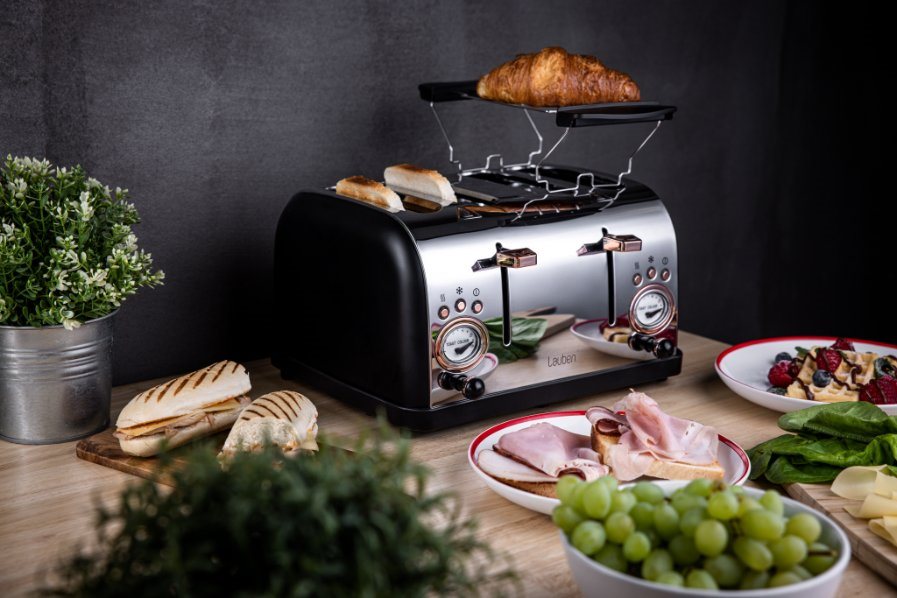 Už žádné hektické snídaně plné hádek o to, kdo si dá první křupavý toast či croissant. Topinkovač Lauben 4 Slice Toaster 1500BC připraví křupavé pečivo pro celou rodinu a vy si tak užijete poklidný start nového dne. Topinkovač opeče najednou toasty ve čtyřech slotech a na dvou ohřívacích mřížkách, jež jsou součástí balení, lze rozpéct třeba croissanty, které tak budou jako čerstvě upečené. Zvolit lze z 6 stupňů intenzity a budete-li potřebovat opékání zastavit, topinkovač disponuje funkcí okamžitého manuálního ukončení.