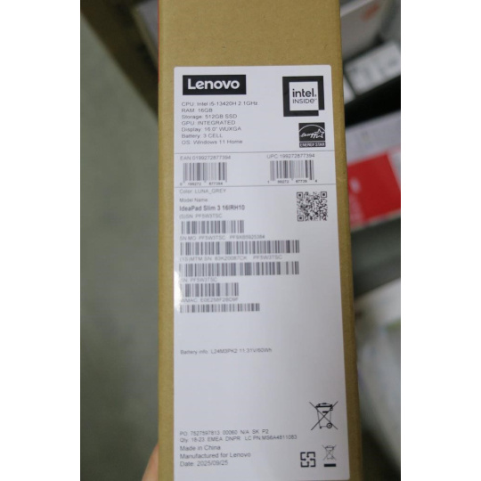 BAZAR -LENOVO NTB IdeaPad Slim 3 16IRH10 - i5-13420H,16" WUXGA IPS,16GB,512SSD,,W11H,2Y CC ( poškodená krabica )