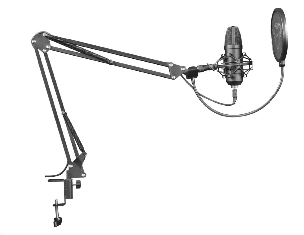- Nastaviteľná svorka na montáž na stôl na umiestnenie mikrofónu do najvhodnejšej polohy