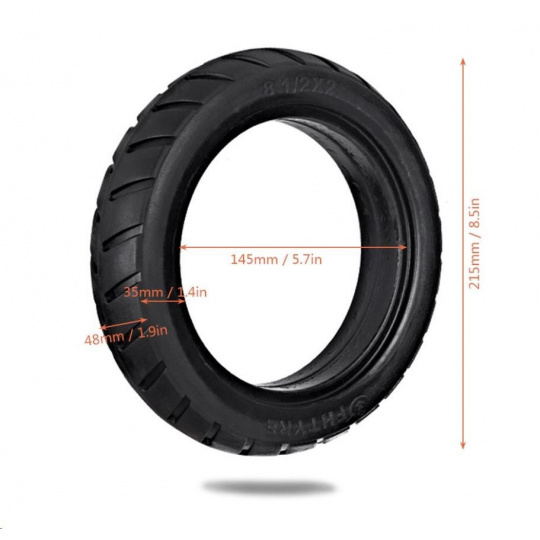 Pevná bezdušová pneumatika je speciálně určená na elektrickou koloběžku. Jedná se o velice univerzální pneumatiku, která je kompatibilní nejen se všemi koloběžkami Scooter, ale také s ostatními značkami koloběžek, které disponují velikostí pneumatik 8,5“ x 2“. Vyrobená je z velmi kvalitního materiálu, díky čemuž je vysoce odolná a na cestách vás nikde nenechá. Jelikož se jedná o pevnou bezdušovou pneumatiku, není třeba se na Vašich cestách obávat propíchnutí duše či ucházení vzduchu z Vašich pneumatik. Pneumatika je vhodná pro přední i zadní kolo a její Instalací na koloběžku Vás krok po kroku provede videonávod. S použitím správných nástrojů tuto instalaci zvládnete i vy.