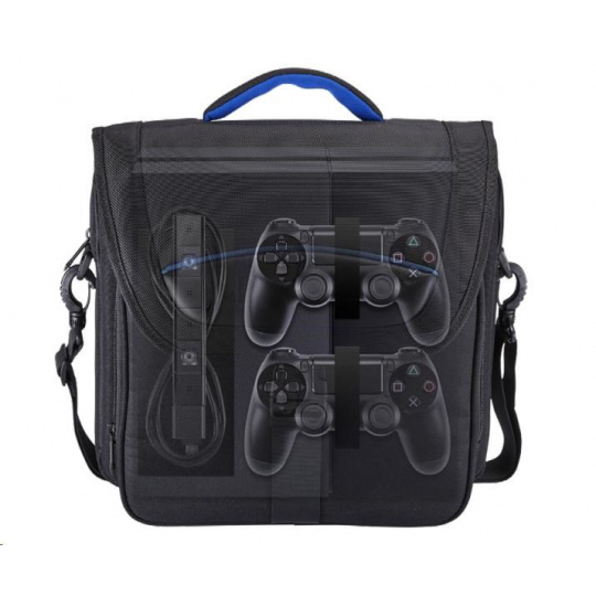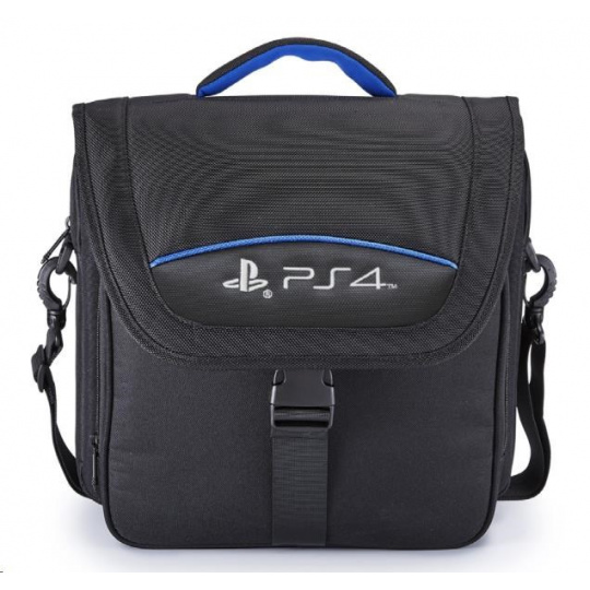 V této cestovní brašně bude vaše oblíbená herní konzole PlayStation 4 v bezpečí, ať už vás cesta zavede kamkoliv. Zatímco pro vlastní konzoli je vyhrazeno místo ve velké hlavní přihrádce uzavíratelné na zip, v sousední menší přihrádce – rovněž uzavíratelné na zip a opatřené gumovými řemínky – snadno upevníte až dva ovladače. Síťovaná kapsa v této přihrádce poté pojme jak kameru, tak i nezbytné kabely. V klopě překlenující obě přihrádky a uzavíratelné na přezku se navíc nachází další kapsa na zip, v níž se najde dostatek místa pro různé drobné příslušenství. Díky plastovým výstupkům na spodní stranědna si brašna udržuje potřebnou stabilitu a vy se tak nemusíte obávat toho, že by se i s konzolí převrátila na bok. Brašnu vyvedenou v černé barvě lze pohodlně přenášet nejenom v ruce, ale s pomocí nastavitelného popruhu i přes rameno.
