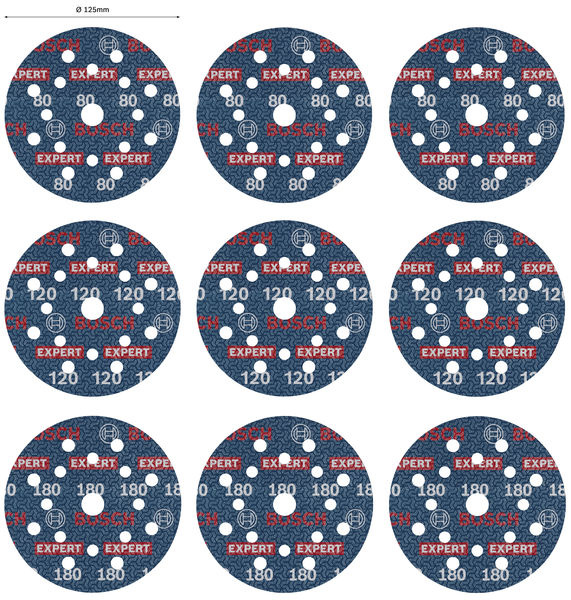 Bosch 9dílná sada brusných kotoučů EXPERT O780 s fólií, 125 mm, G80 (3×); G120 (3×); G180 (3×)