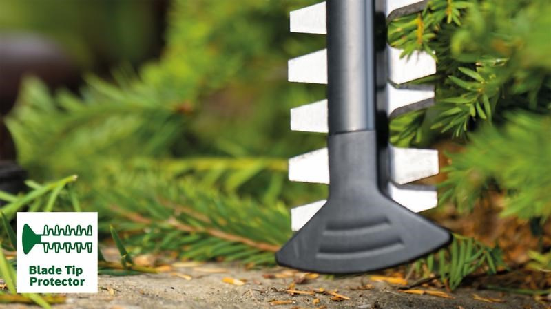 Vynikajúci výkon: Silný motor a rozstup nožov 16 mm umožňuje potrebnú silu na strihanie mladších, resp. menších až stredne veľkých živých plotov.