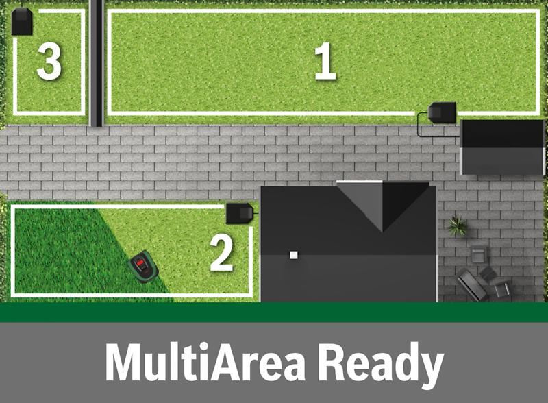 Vďaka funkcii MultiArea poseče viac trávnatých plôch (až do 700 m2) a vyporádá sa s úzkymi prechodmi (75 cm medzi drôtmi).