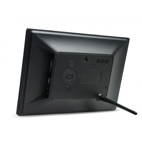 Digitálny fotorámček s uhlopriečkou 7", LED podsvietenie, rozlíšenie 1024x600px, pomer 16:9, prehliadanie obrázkov JPEG, počúvanie hudby MP3 a prehrávanie videa, multislot SDHC/MS, USB2 pre FlashStick, mini USB2, Audio out, IR diaľkové ovládanie, farba: čierna. Auto Start, OSD menu, SlideShow, Zoom, otáčanie obrázkov, kontrast/ svetelnosť/ farebnosť, budík, hodiny, kalendár. TFT LCD, uhlopriečka 17,8cm. Formáty Fotiek: JPEG - Video: MPEG 1/2/4 (Xvid) - Audio: MP3, WMA. Možnosť uchytenia na stenu alebo našrobovania stojančeka, výstup slúchadielka, sieťový zdroj AC/DC 5V/1A, rozmery: 204x143x26 mm, hmotnosť 518g/258g.