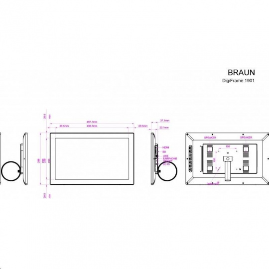 Braun LCD fotorám DigiFRAME 1901 (18,5", 1366x768px, 16:9 IPS, FullHD, AV/HDMI, 8GB)