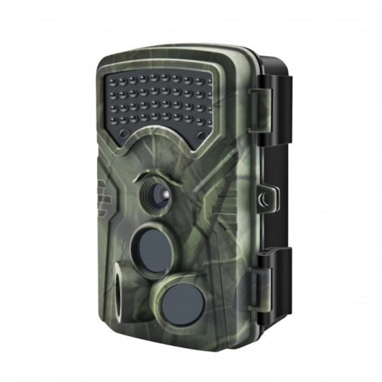 Fotopast s vysokým rozlíšením CMOS 13MP a objektívom 90°. Záznam 1-3 fotky až 48 MP alebo 3s-10min video až 4K/10fps, 3x PIR senzor 120°/ odozva 0,2s/ 40 Black IR LED do 20m, vnútorné 2" LCD, SD do 128GB, 4x alebo 8x AA batérie, rozmery 138x97x83mm, hmotnosť 264g. Vodotesný prístroj podľa IP66, farebné denné zábery a čiernobiele v noci, záznam dátumu, času, teploty a fázy mesiaca, PIR senzor má 3 citlivosti, interval medzi zábermi 5s-60min, časozberné zábery 3s-24h, stand-by 0,3mA až 6 mesiacov, mikrofón, reproduktor. Slot SD, miniUSB, DC in 6V/2A pre externý zdroj, statívový závit, možnosť uzamknutia, dizajn camouflage. V balení kábel USB, remienok a kovové uchytenie s guľovou hlavou. BlackVision LED sú vhodné aj na ostrahu proti zlodejom - nie sú vidieť ani pri priamom pohľade na fotopast pri expozícii.