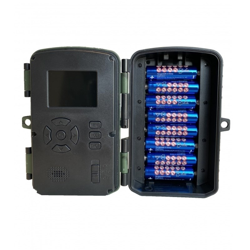 Fotopast s vysokým rozlíšením CMOS 13MP a objektívom 90°. Záznam 1-3 fotky až 48 MP alebo 3s-10min video až 4K/10fps, 3x PIR senzor 120°/ odozva 0,2s/ 40 Black IR LED do 20m, vnútorné 2" LCD, SD do 128GB, 4x alebo 8x AA batérie, rozmery 138x97x83mm, hmotnosť 264g. Vodotesný prístroj podľa IP66, farebné denné zábery a čiernobiele v noci, záznam dátumu, času, teploty a fázy mesiaca, PIR senzor má 3 citlivosti, interval medzi zábermi 5s-60min, časozberné zábery 3s-24h, stand-by 0,3mA až 6 mesiacov, mikrofón, reproduktor. Slot SD, miniUSB, DC in 6V/2A pre externý zdroj, statívový závit, možnosť uzamknutia, dizajn camouflage. V balení kábel USB, remienok a kovové uchytenie s guľovou hlavou. BlackVision LED sú vhodné aj na ostrahu proti zlodejom - nie sú vidieť ani pri priamom pohľade na fotopast pri expozícii.