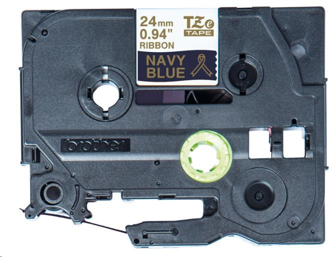 BROTHER TZE-RN54 - 24 mm široká TZ kazeta, TEXTILNÁ páska 4 m - na výrobu darčekov - NON-SLIP - MODRÁ PÁSKA, ZLATÝ POTISK
