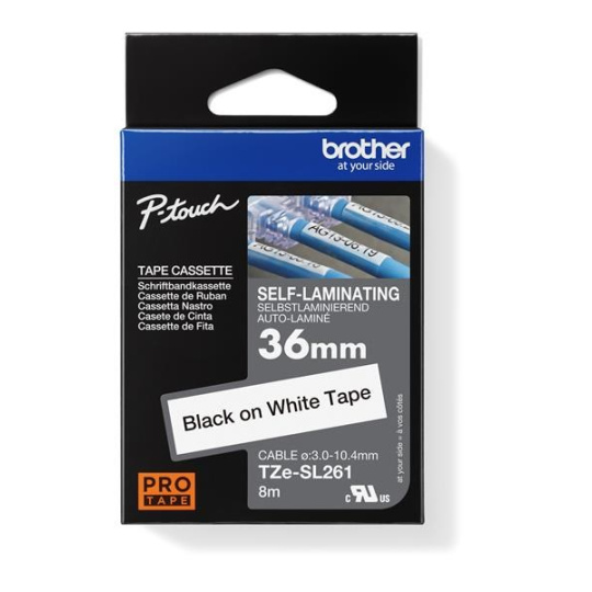 Samonálepovacia páska TZe-SL261 s dĺžkou 36 mm s čiernym tlačom na biele bola vyvinutá pre dlhodobú identifikáciu sieťových káblov. Má špeciálne lepiace vlastnosti štítkov pre trvácne pevné omotanie okolo vašich vodičov a káblov. Kompatibilná s niektorými modelmi P-touch, ktoré používajú pásky TZe 36 mm.