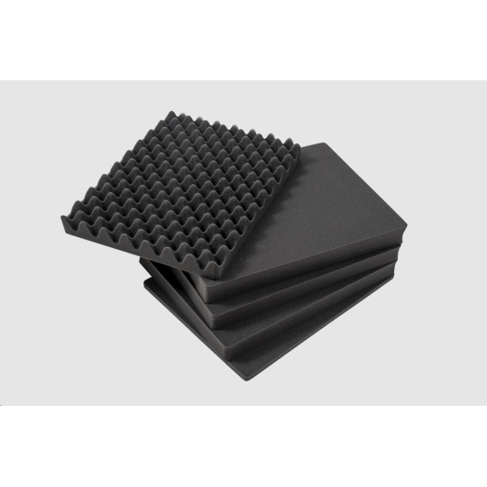 Comes with pre cut foam inserts in the lid and main compartment.