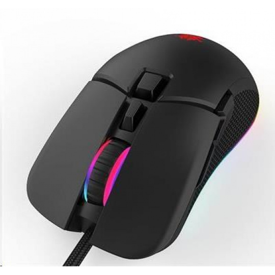 senzor optické zariadenie Sunplus 199 rozlíšenie 800-1600-2400-3200-4800-6400DPI počet tlačidiel 7 prepínač hauno, životnosť 5 mil. spona podsvietenie RGB 5 režimov + vypnuté podsvietenie pripojenie uSB 2.0 kábel opletené s tienením 1.5m rozmery 125 x 70 x 45 mm hmotnosť 137 g kompatibilné s win7/8/10/XP/VISTA