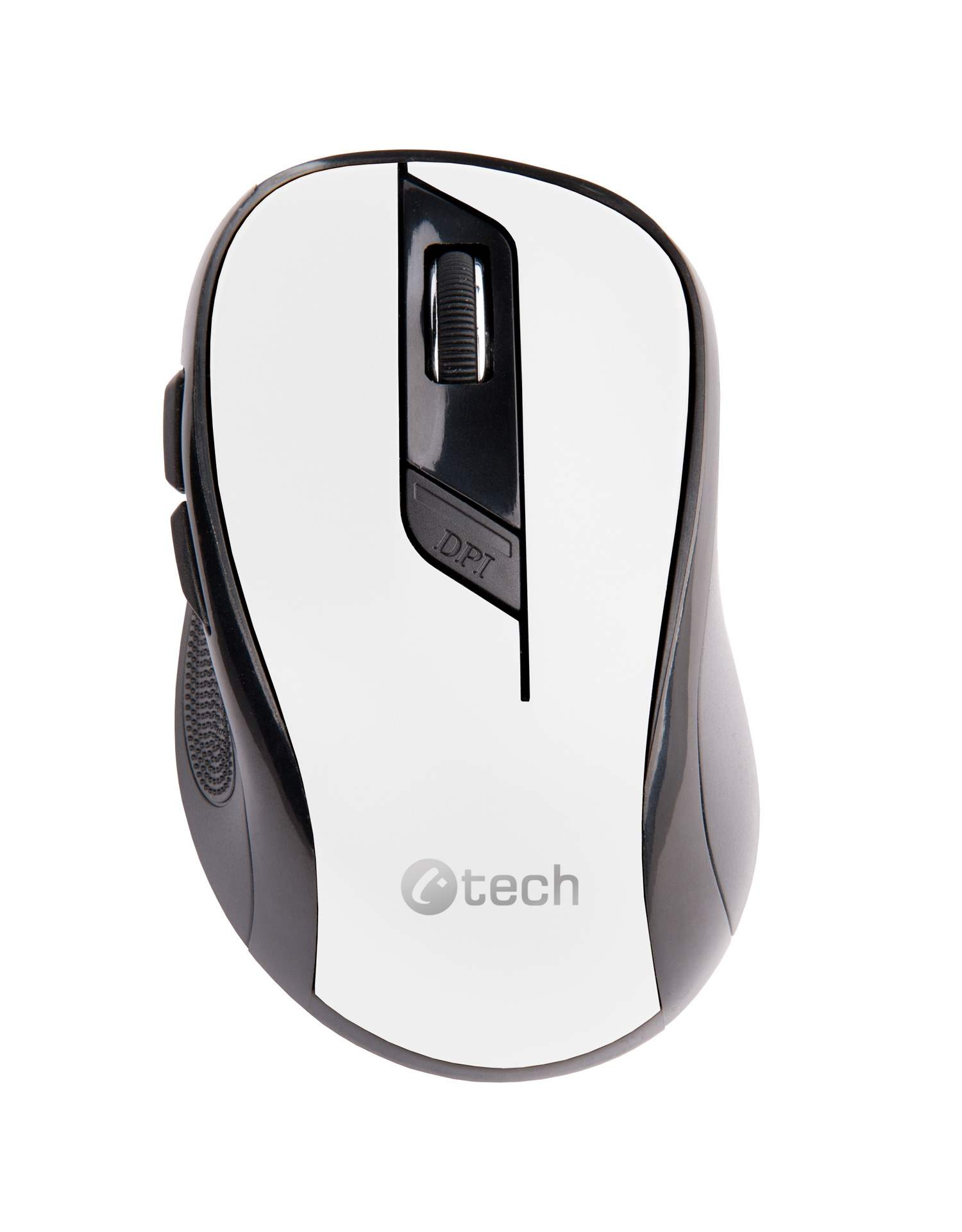 Myš C-TECH WLM-02, čiernobiela, bezdrôtová, 1600DPI, 6 tlačidiel, USB nano prijímač