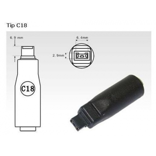 Konektor, ktorý možno použiť na redukciu konektora C.4 univerzálne sieťové adaptéry na konektor C18 (6,54 mm x 3,2 mm) vhodné pre notebooky Dell