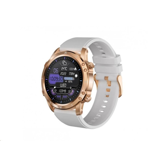 Moderné outdoorové fitness hodinky CARNEO ADVENTURE HR+ druhej generácie v zlatoružovej farbe s bielym, na dotyk veľmi príjemným silikonovým remienkom a farebným SUPER AMOLED displejom s vysokým jasom a funkciou trvalého zobrazenia času monitorujú vašu dennú aktivitu, úroveň stresu, ale je možné ich spárovať s mobilným telefónom a upozorniť vás na prichádzajúci hovor alebo SMS. Hodinky umožňujú telefonovať, aniž by ste museli vybrať telefón z tašky, vďaka vstavanému mikrofónu a reproduktoru až do vzdialenosti 10 m od telefónu. Ich bezchybné kovové telo s nadčasovými outdoorovými krivkami je tak návykové, že ich po prvom nosení nebudete chcieť sundávať zo zápästia. Extrémne odolné sklo Gorilla glass ochráni ich krištáľovo čistý displej pred poškriabaním.
