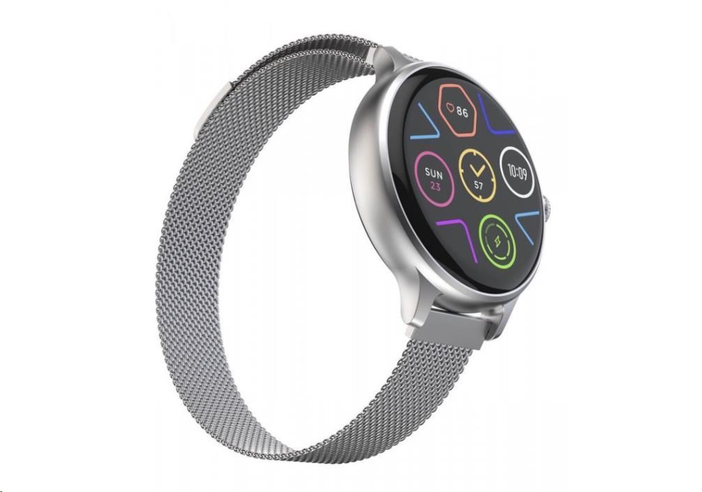 Luxusné fitness hodinky CARNEO HERO mini HR+ s Milánskym, kovovým remienkom s farebným Super HD AMOLED displejom. Monitorujú vašu dennú aktivitu, výšku stresu a je možné ich spárovať s mobilným telefónom, čím vás upozornia na prichádzajúci hovor či SMS. Ich dokonalé, minimalistické kovové telo s jednoduchými krivkami je tak návykové, že ich nebudete chcieť po prvom nosení dať z ruky dole. Hodinky vám umožňujú vyrídiť telefonický hovor cez zabudovaný mikrofón a reproduktor, ak budete v dosahu spárovaného telefónu (vzdialenosť až 10 metrov).