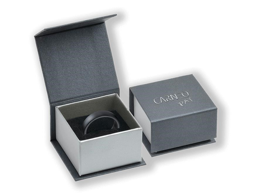 Elegantný platobný prsteň Carneo, vyrobený z prémiovej odolnej keramiky, kombinuje vysokú odolnosť voči poškrabaniu, vodeodolnosť a pohodlie nosenia. Platby sú realizované bezkontaktným spôsobom cez technológiu NFC, bez nutnosti nabíjania. Aktivácia a správa prebiehajú jednoduchým spárovaním cez aplikáciu Carneo Pay, ktorá využíva tokenizáciu platby, čím zaručuje bezpečnosť. Prsteň je kompatibilný s Android aj iOS zariadeniami, je odolný voči vode podľa štandardu IP68 a je k dispozícii v niekoľkých veľkostiach.