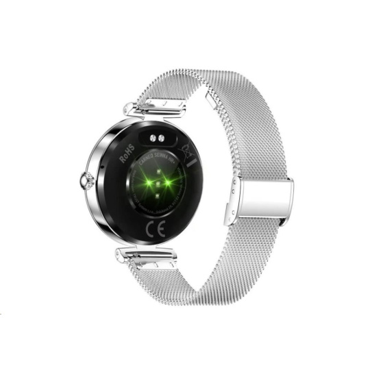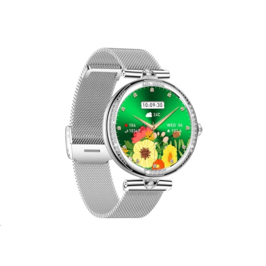 Luxusné dámske fitness hodinky CARNEO Seinna HR+ strieborné sú skutočným šperkom na ruke každej ženy. Kovové telo osadené brúsenými kameňmi pritiahne pohľady všetkých. S farebným SUPER AMOLED displejom monitorujú vašu dennú aktivitu a je možné ich spárovať s mobilným telefónom, vďaka čomu môžete vybaviť telefónny hovor priamo zo zápästia, alebo vás upozorní na prichádzajúci hovor, SMS alebo správu z aplikácií.