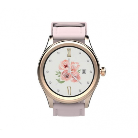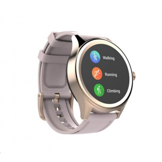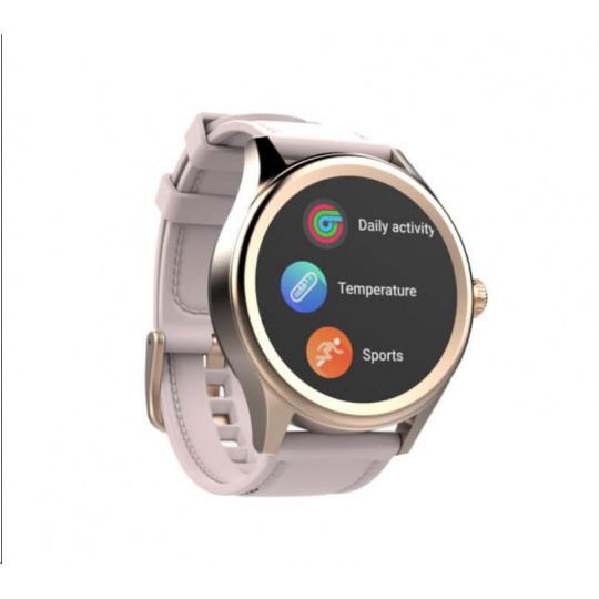 Smart hodinky Carneo Prime GTR v elegantnom zlatom prevedení, farebným dotykovým displejom je možné aktivovať jednoduchým otočením ruky. Okrem bežných "smart" funkcií disponujú aj fitness športovými funkciami a to všetko v elegantnom business look prevedení. Rosegold silikónový remienok v dizajne koženého páska s prešívaním umocňuje ich eleganciu.