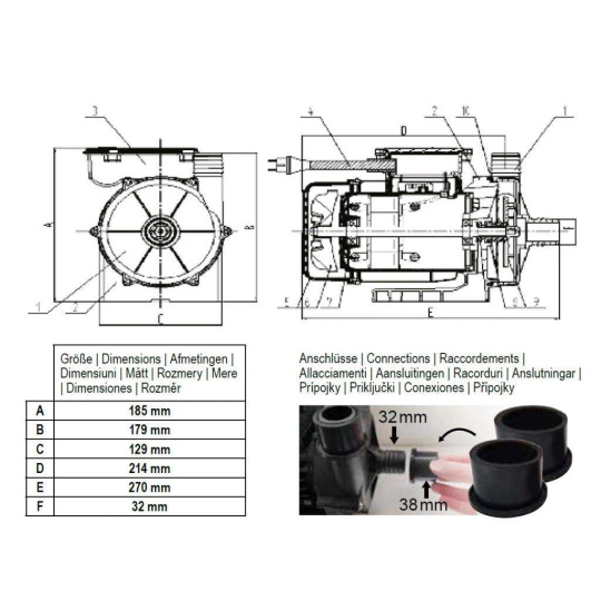 | Pripojenie sacie a výtlačnej strany 32/38 mm |