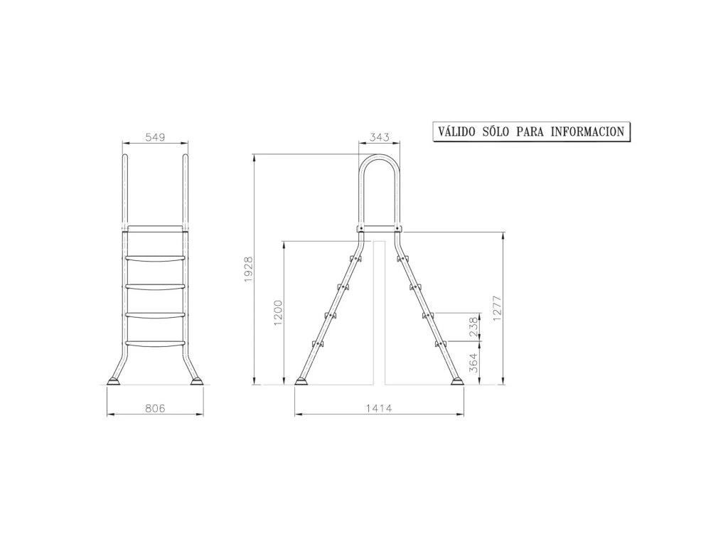 Bazénový rebrík pre bazény so stenou až 122 cm, vyrobený z kvalitnej nerezovej ocele, ktorá zabezpečí jeho dlhú životnosť. Rebrík má pevné stabilné plastové schodíky a plošinu s protišmykovou úpravou, udrží hmotnosť až 150 kg. Rebrík má 4 stupne na vnútornej a vonkajšej strane. Nohy rebríka sú zakončené koncovkami z protišmykovej gumy so stabilnou podložkou, ktoré bránia nechcenému pohybu rebríka a zvyšujú tak bezpečnosť. Zároveň zabraňujú poškodeniu vášho bazéna.