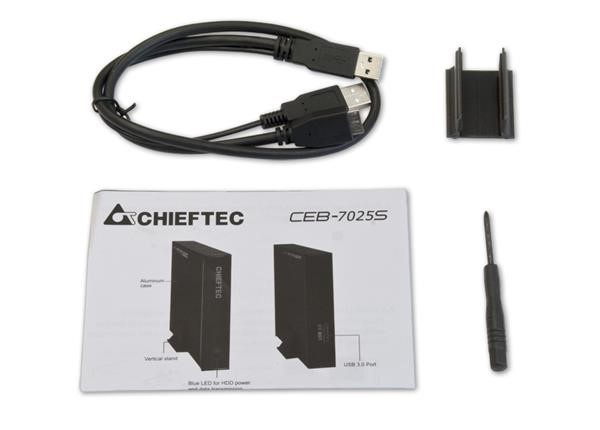 Rozsah dodávky: 1x CEB-7025S, USB3.0 Dátový kábel, stojan, príručka na inštaláciu HDD