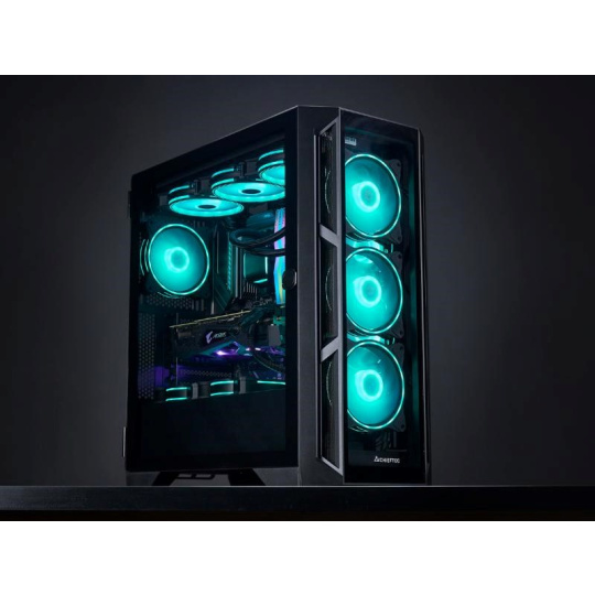 CHIEFTEC APEX je vybavený skriňou formátu E-ATX s plne čírym tvrdeným sklom na prednom a bočnom paneli, vrátane štyroch predinštalovaných 120 mm ventilátorov ARGB, ktoré poskytujú pôsobivý štýl a chladenie. Ventilátory ARGB sú pripojené k riadiacemu rozbočovaču, ktorý umožňuje synchronizáciu ARGB M/B a reguláciu otáčok ventilátora.