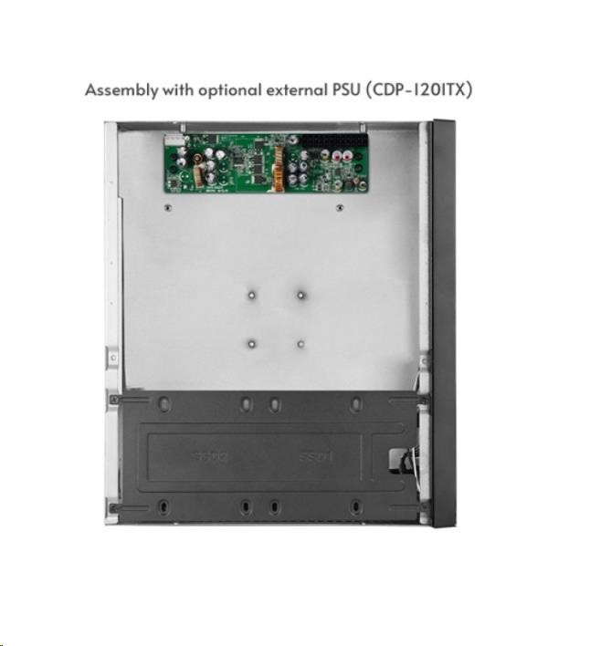 | Napájanie | Voliteľný AC-DC adaptér s DC-DC transformátorom (CDP-120ITX alebo CDP-085ITX) |