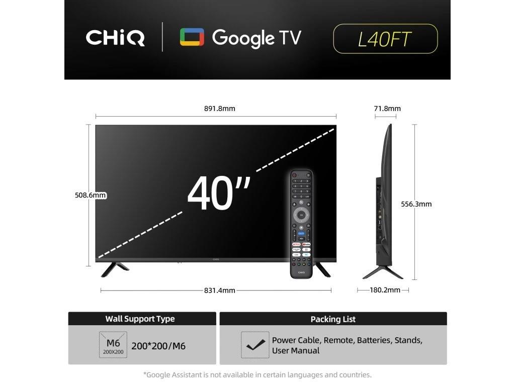 CHiQ L40FT TV 40", FHD, smart, Google TV, dbx-tv, Dolby Audio, Frameless