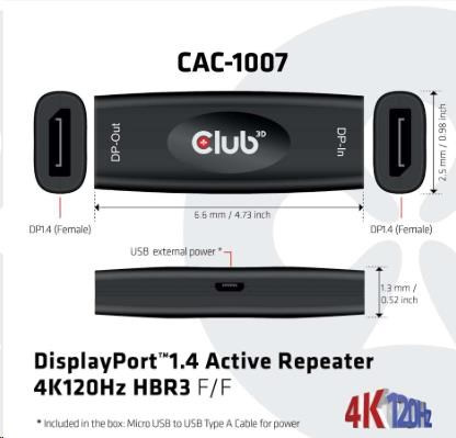 Club3D Adaptér aktivní DisplayPort 1.4 Repeater 4K120HZ HBR3 (F/F), černá
