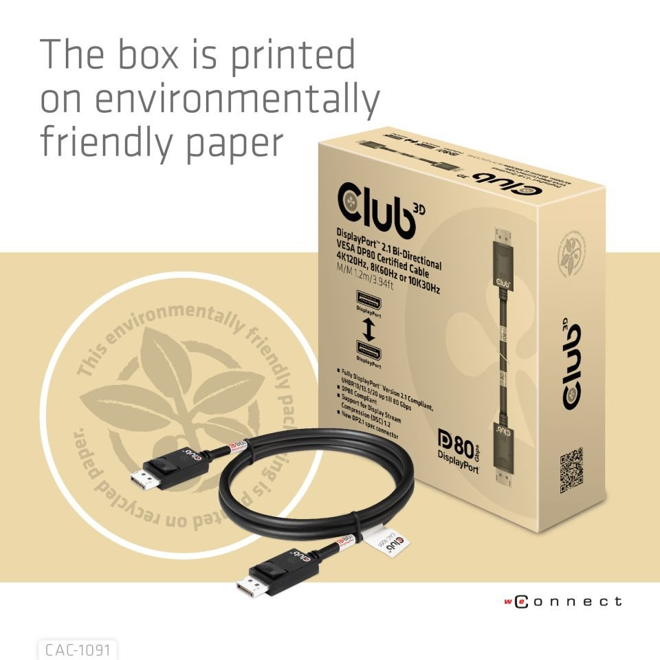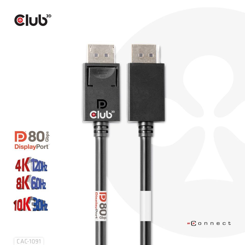 Club3D Kabel DisplayPort 2.1 na DisplayPort 2.1 VESA DP80, 4K240Hz/8K60Hz/10K30Hz HDR (M/M), 1.2m, černá