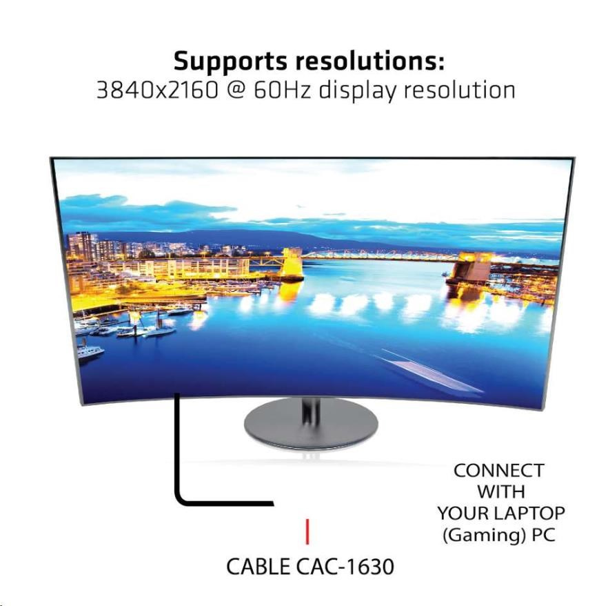 Club 3D CAC-1630 je dokonalým riešením pre každú konferenčnú miestnosť. Tento adaptér vám umožní pripojiť notebooky/tablety/telefóny, ktoré podporujú HDMI™, MiniDP™1.2 a/alebo videoportov USB typu C* k projektoru, televízoru alebo monitoru s rozlíšením HDMI™ 4K60Hz.