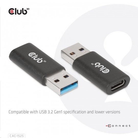 Adaptér Club3D USB 3.2 Gen1 typu A na USB 3.2 Gen1 typ C (M/F), čierna