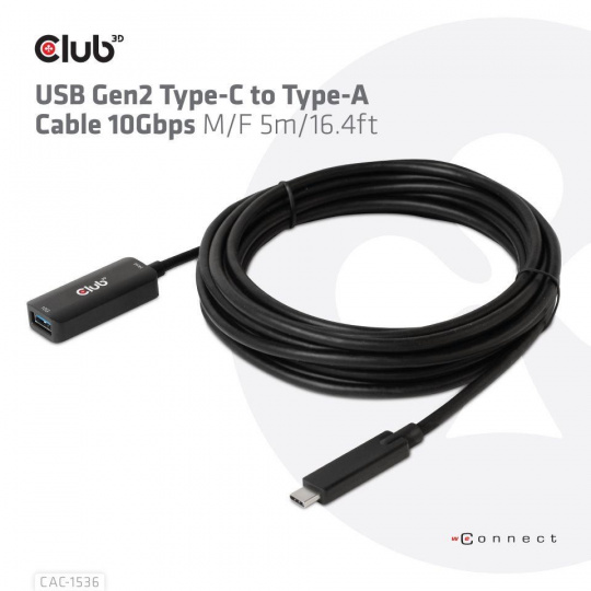 | V krabici | CAC-1536 Kábel USB Gen2 Type-C na Type-A 10Gbps M/F 5m/16.4 stopy |