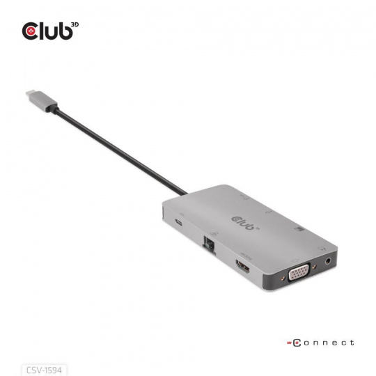 Club3D hub USB-C, rozbočovač 9 v 1 s HDMI, VGA, 2x USB Gen1 Type-A, RJ45