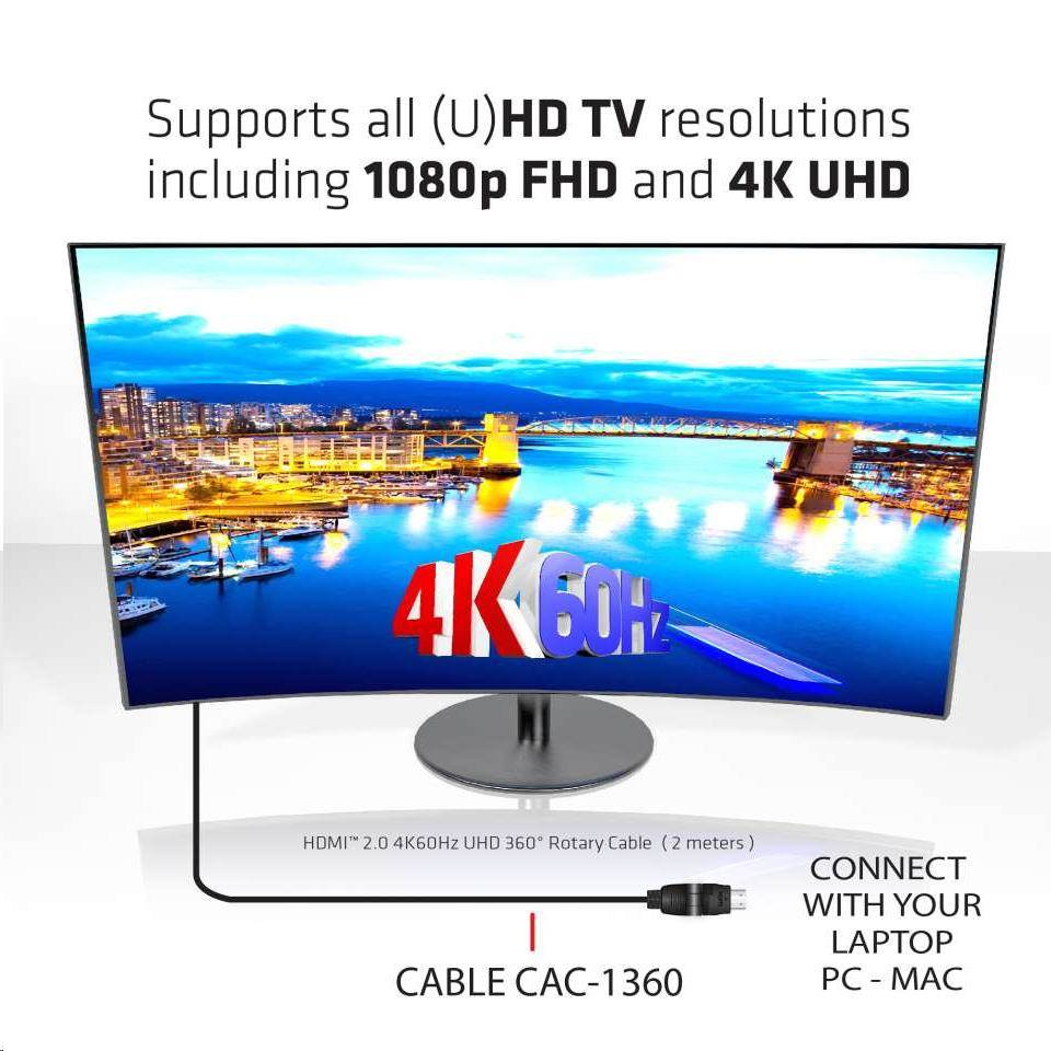 Club-3D HDMI™ 2.0 4K60Hz UHD 360° Rotary Cable 2M/6.56ft Male/Male