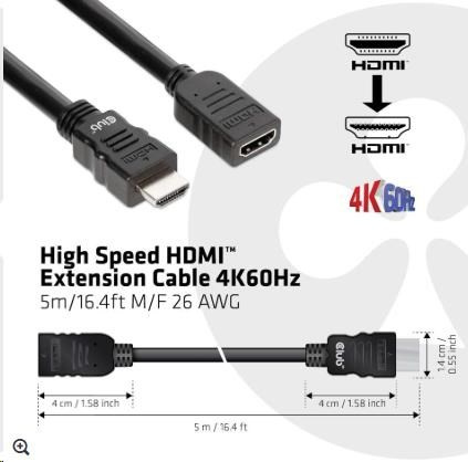 Club3D Kabel prodlužovací Rychlý HDMI 4K60HZ (M/F), 5m, černá, 26 AWG