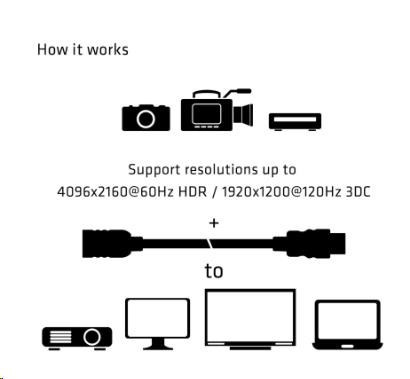 | - Kvalitný vysokorýchlostný predlžovací kábel HDMI™, 26 AWG. - V súlade s HDMI™ 1.3 / 1.4 / 2.0 štandard - rýchlosť prenosu dát až 18 Gb/s. - Podporuje rozlíšenie až do 4096x2160@60Hz HDR / 1920x1200@120Hz 3D. * - Produkt je plne plug & play a nevyžaduje externé napájanie. * Funkčnosť závisí aj od použitého kábla HDMI™ M/M. V kombinácii s týmto predlžovacím káblom CAC-1325 odporúčame použiť kábel HDMI Male/Male kvality 28AWG, ako napríklad Club 3D CAC-1371/CAC-1372 a/alebo CAC-1373 |