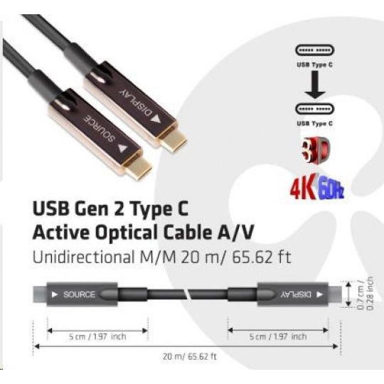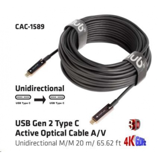 Kábel USB Club3D 3.2 Typ C Gen2, aktívny, (M/M), 20 m, optický, aktívny, jednosmerný
