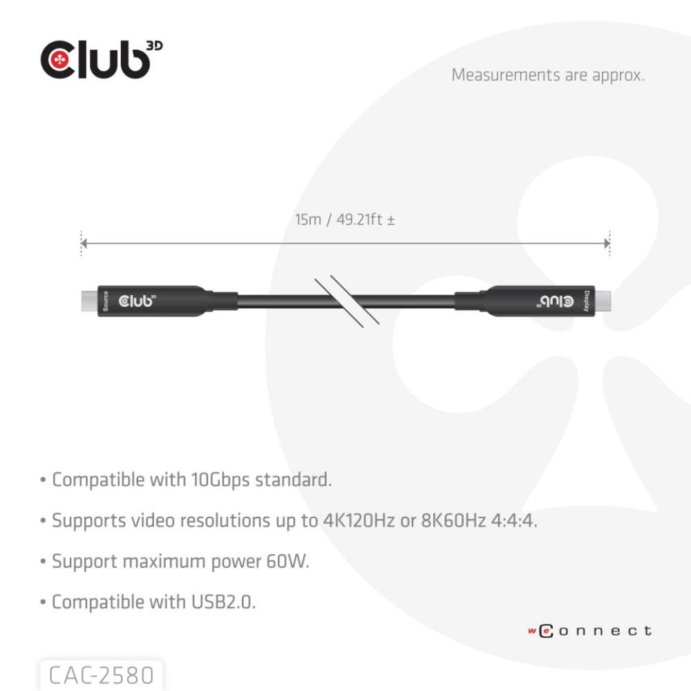 Club 3D CAC-2580 je prvý plne funkčný USB-C® kábel na trhu, ktorý má dĺžku 15 metrov.