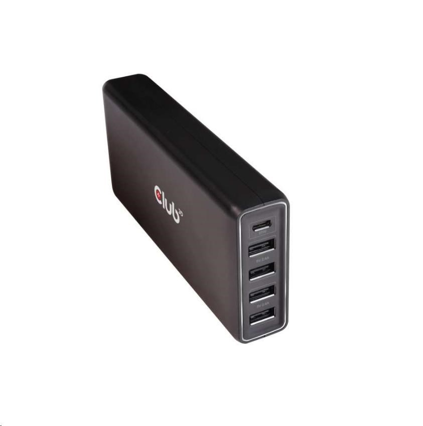 Nabíjačka Club3D USB typu A a C, 5 portov, 111 W